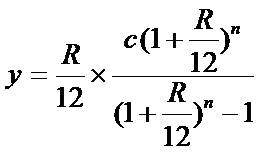 اصل مبلغ تسهيلات = c قسط ماهانه = y